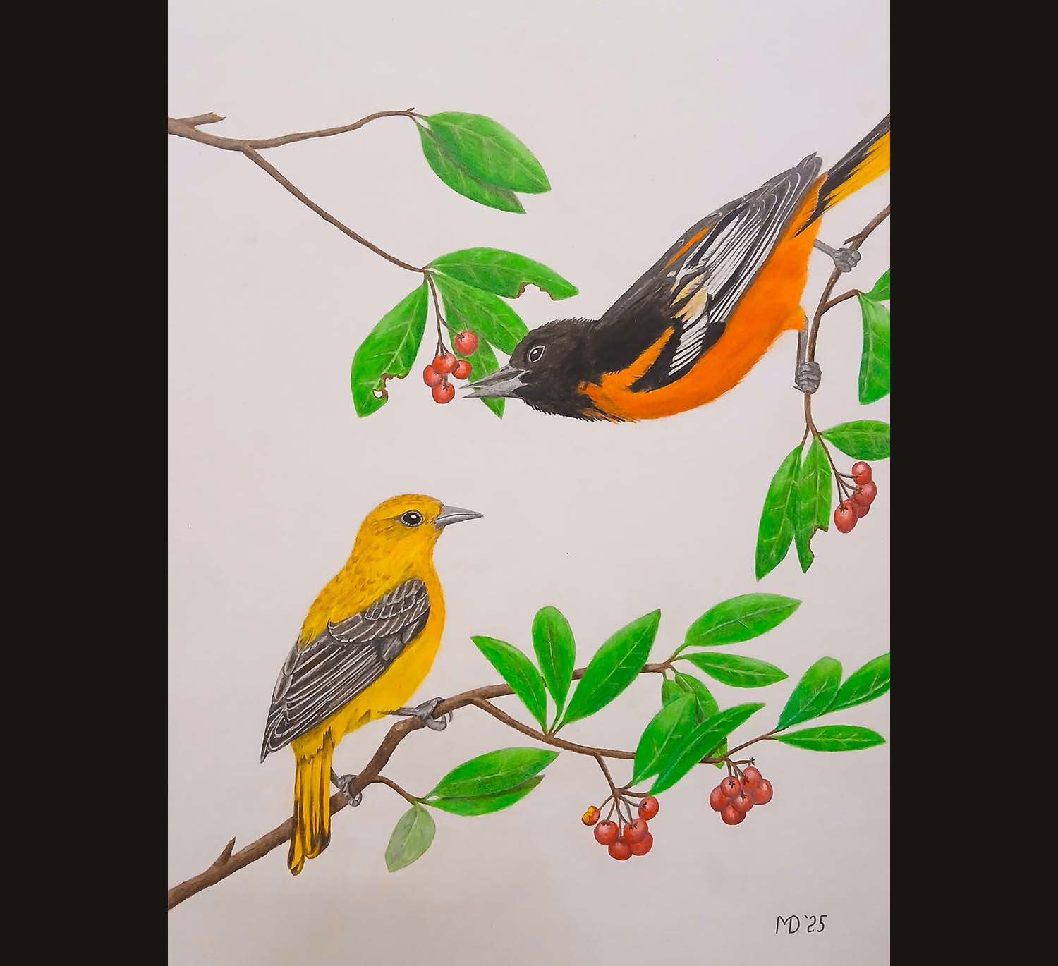 As an avid birder, encountering a Baltimore oriole is always a highlight. Their vivid colors always stand out instantly against the landscape. In this drawing I tried to capture the beauty and elegance of a species whose appearance never feels routine.
