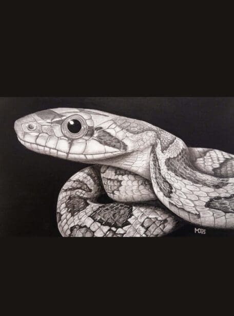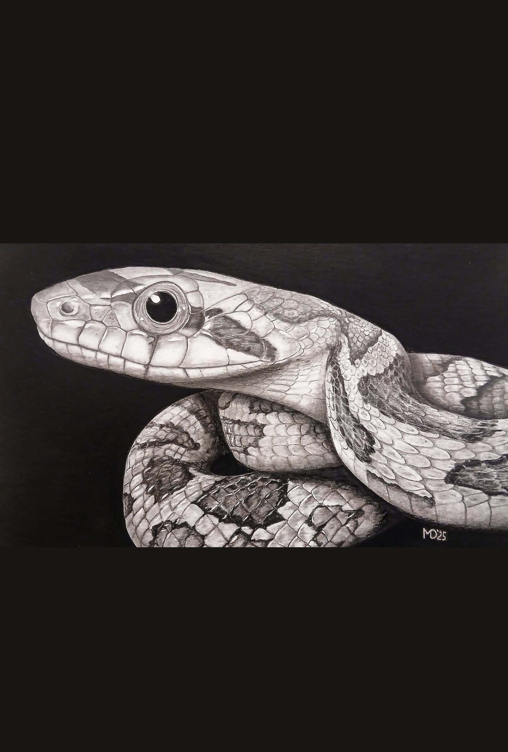 This juvenile Texas Rat Snake is drawn from a photograph by my good friend Bill Lamar. An agile climber throughout its life, this species can even scale brick walls. Juveniles often feed on treefrogs, while adults darken with age and prey on birds, eggs, and small mammals.
